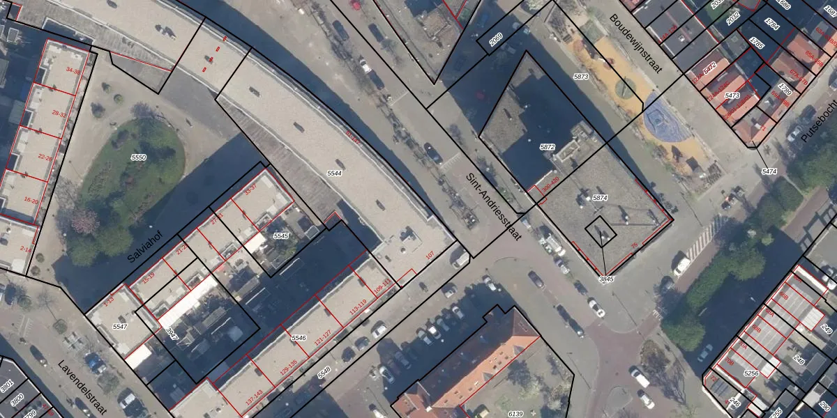 Sint-Andriesstraat 113 is gelegen op kadastraal perceel CLS00G5544. Deze kadastrale aanduiding is uniek en wordt gebruikt door het Kadaster om eigendomsrechten en andere zakelijke rechten vast te leggen. Het perceel maakt onderdeel uit van de kadastrale gemeente Charlois.