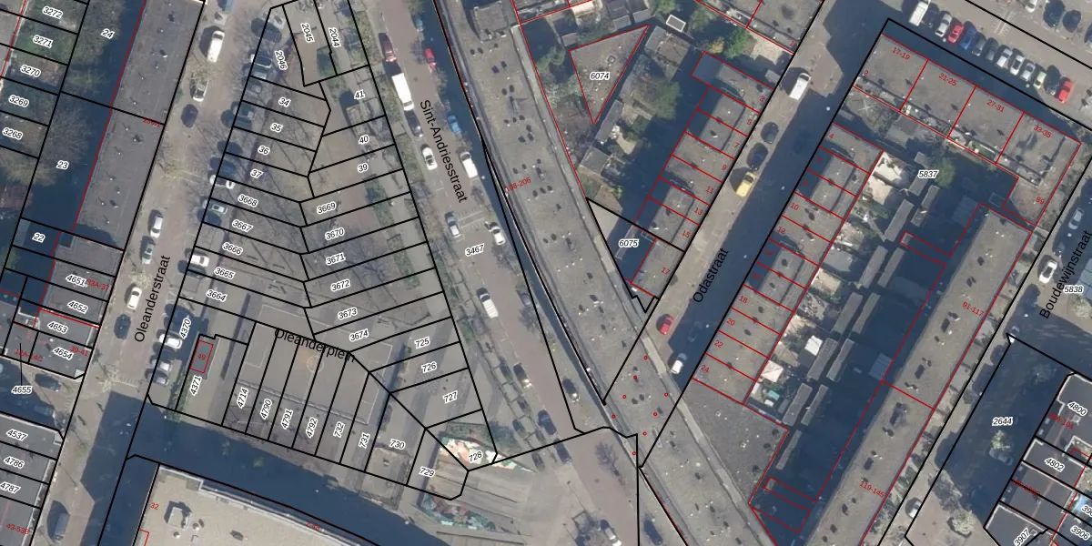 Sint-Andriesstraat 198 is gelegen op kadastraal perceel CLS00G6074. Deze kadastrale aanduiding is uniek en wordt gebruikt door het Kadaster om eigendomsrechten en andere zakelijke rechten vast te leggen. Het perceel maakt onderdeel uit van de kadastrale gemeente Charlois.