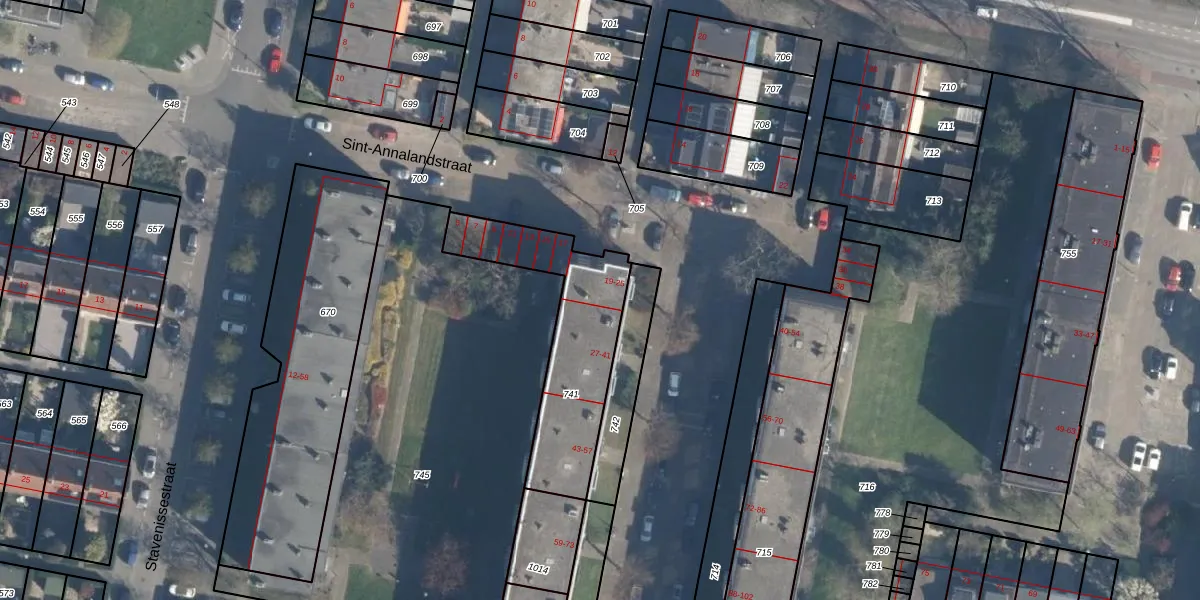 Sint-Annalandstraat 21 is gelegen op kadastraal perceel CLS00L741. Deze kadastrale aanduiding is uniek en wordt gebruikt door het Kadaster om eigendomsrechten en andere zakelijke rechten vast te leggen. Het perceel maakt onderdeel uit van de kadastrale gemeente Charlois.