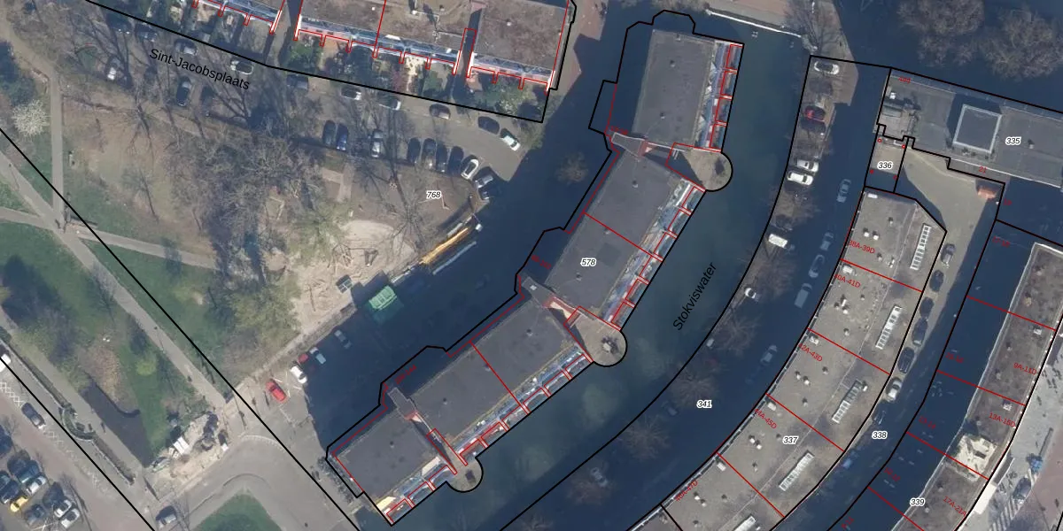Het perceel waarop Sint-Jacobsplaats 86 staat heeft een oppervlakte van 2374 m². Dit is een zeer groot perceel. De perceeloppervlakte wordt geregistreerd door het Kadaster. Gedetailleerde informatie over de maten van dit perceel kunt u vinden in het rapport Kadastrale kaart met maatvoering van Sint-Jacobsplaats 86.