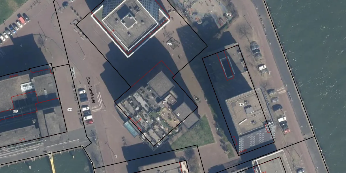 Het perceel waarop Sint-Jobskade 98 staat heeft een oppervlakte van 3835 m². Dit is een zeer groot perceel. De perceeloppervlakte wordt geregistreerd door het Kadaster. Gedetailleerde informatie over de maten van dit perceel kunt u vinden in het rapport Kadastrale kaart met maatvoering van Sint-Jobskade 98.