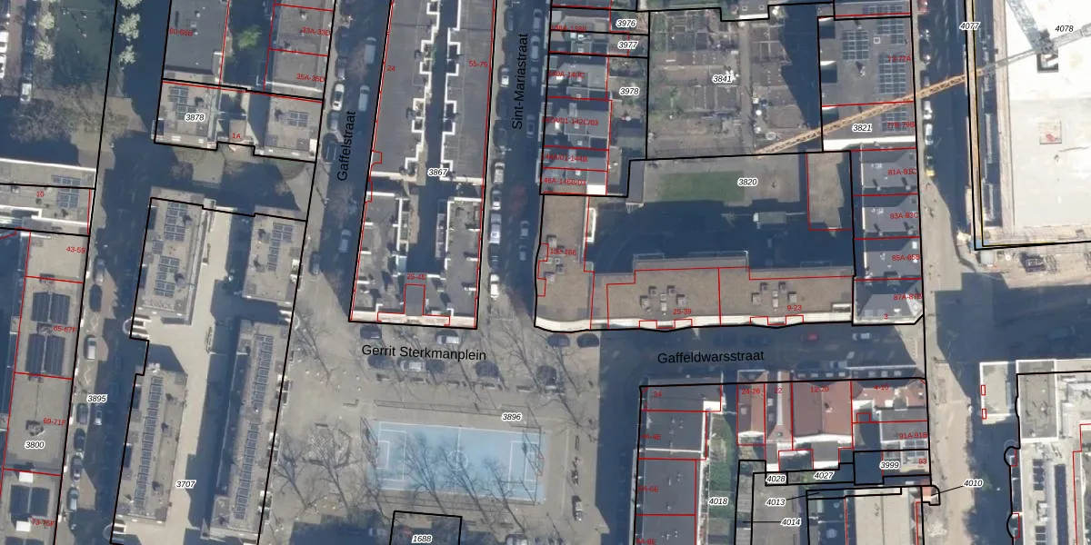 Het perceel waarop het adres ligt is DHV00-D-3820. De afkorting 'DHV00' staat voor kadastrale gemeente Delfshaven. De gemiddelde perceeloppervlakte in de kadastrale gemeente Delfshaven is 628,53 m². Dit perceel is met zijn 1680 m² dus groter dan gemiddeld. Het grootste perceel in de kadastrale gemeente is 22,2 ha. Het kleinste perceel heeft een oppervlakte van 0 m². Op het perceel zijn 24 adressen aanwezig. De huidige grenzen van het perceel zijn digitaal in de Basisregistratie Kadaster (BRK) geregistreerd op 03-02-2014.