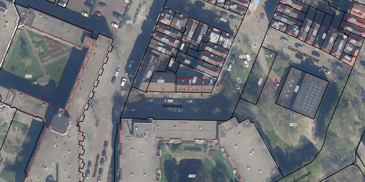 Sionstraat 43-A is gelegen op kadastraal perceel KLG00G5188. Deze kadastrale aanduiding is uniek en wordt gebruikt door het Kadaster om eigendomsrechten en andere zakelijke rechten vast te leggen. Het perceel maakt onderdeel uit van de kadastrale gemeente Kralingen.