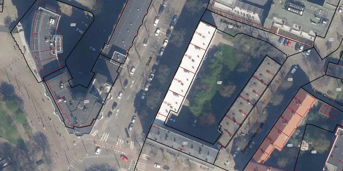 Slaak 116 is gelegen op kadastraal perceel RTD04AE616. Deze kadastrale aanduiding is uniek en wordt gebruikt door het Kadaster om eigendomsrechten en andere zakelijke rechten vast te leggen. Het perceel maakt onderdeel uit van de kadastrale gemeente Rotterdam.