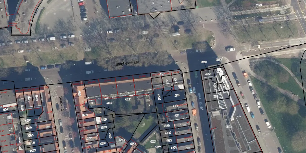 Slaghekstraat 10-B is gelegen op kadastraal perceel RTD05V5527. Deze kadastrale aanduiding is uniek en wordt gebruikt door het Kadaster om eigendomsrechten en andere zakelijke rechten vast te leggen. Het perceel maakt onderdeel uit van de kadastrale gemeente Rotterdam.