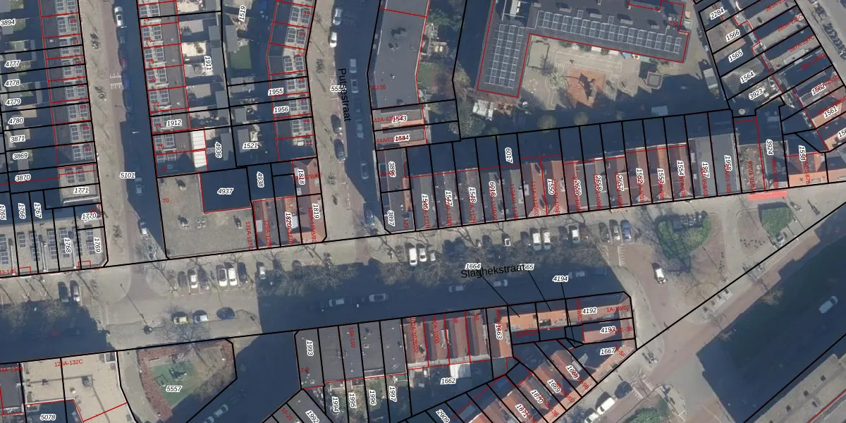 Slaghekstraat 121-A is gelegen op kadastraal perceel CLS00G1546. Deze kadastrale aanduiding is uniek en wordt gebruikt door het Kadaster om eigendomsrechten en andere zakelijke rechten vast te leggen. Het perceel maakt onderdeel uit van de kadastrale gemeente Charlois.