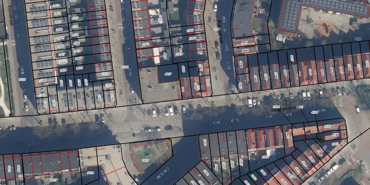 Slaghekstraat 129-B is gelegen op kadastraal perceel CLS00G4938. Deze kadastrale aanduiding is uniek en wordt gebruikt door het Kadaster om eigendomsrechten en andere zakelijke rechten vast te leggen. Het perceel maakt onderdeel uit van de kadastrale gemeente Charlois.