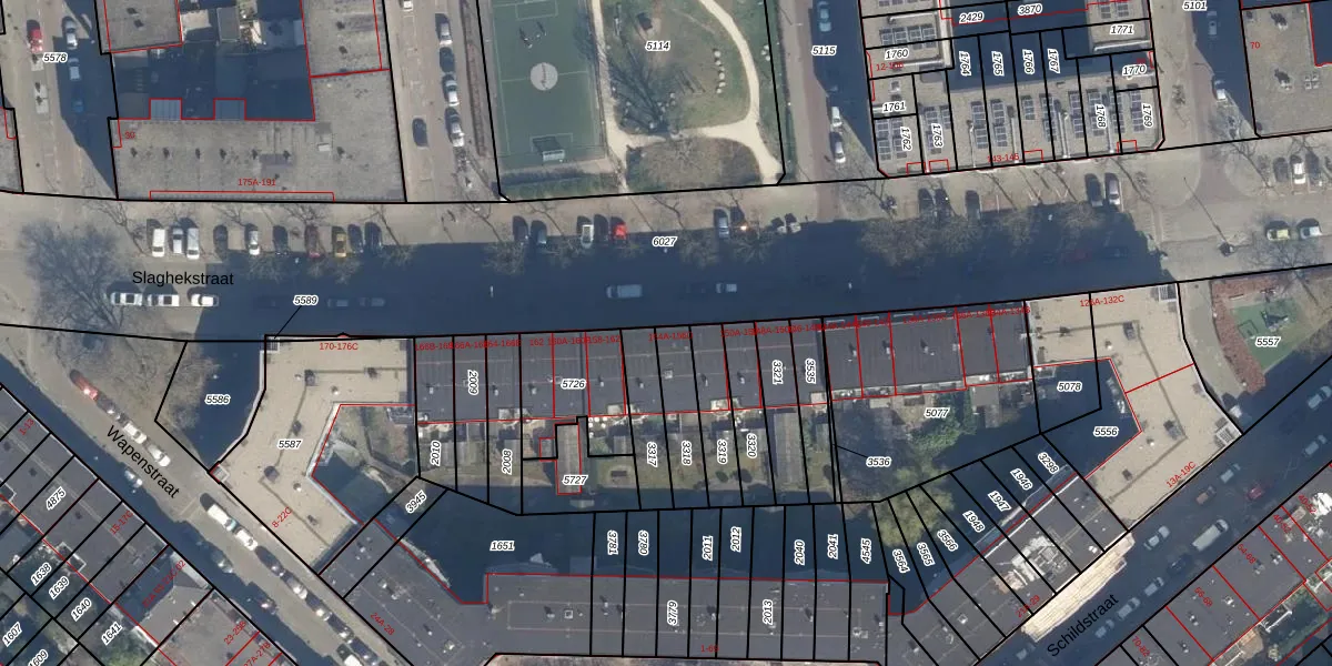 Slaghekstraat 154-C is gelegen op kadastraal perceel CLS00G3318. Deze kadastrale aanduiding is uniek en wordt gebruikt door het Kadaster om eigendomsrechten en andere zakelijke rechten vast te leggen. Het perceel maakt onderdeel uit van de kadastrale gemeente Charlois.