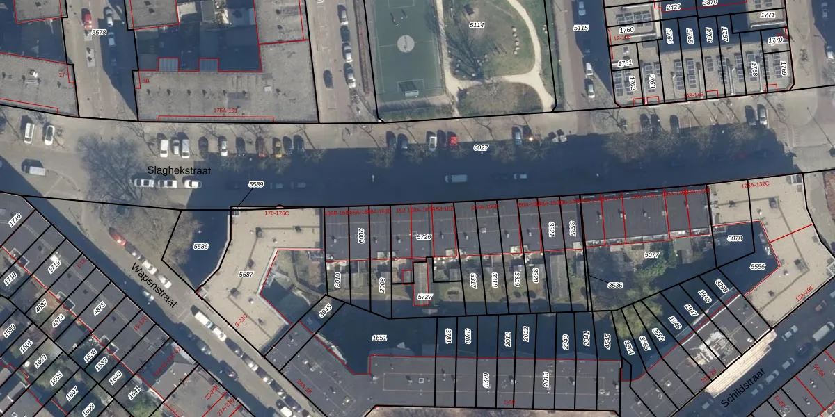 Slaghekstraat 160-B is gelegen op kadastraal perceel CLS00G5726. Deze kadastrale aanduiding is uniek en wordt gebruikt door het Kadaster om eigendomsrechten en andere zakelijke rechten vast te leggen. Het perceel maakt onderdeel uit van de kadastrale gemeente Charlois.