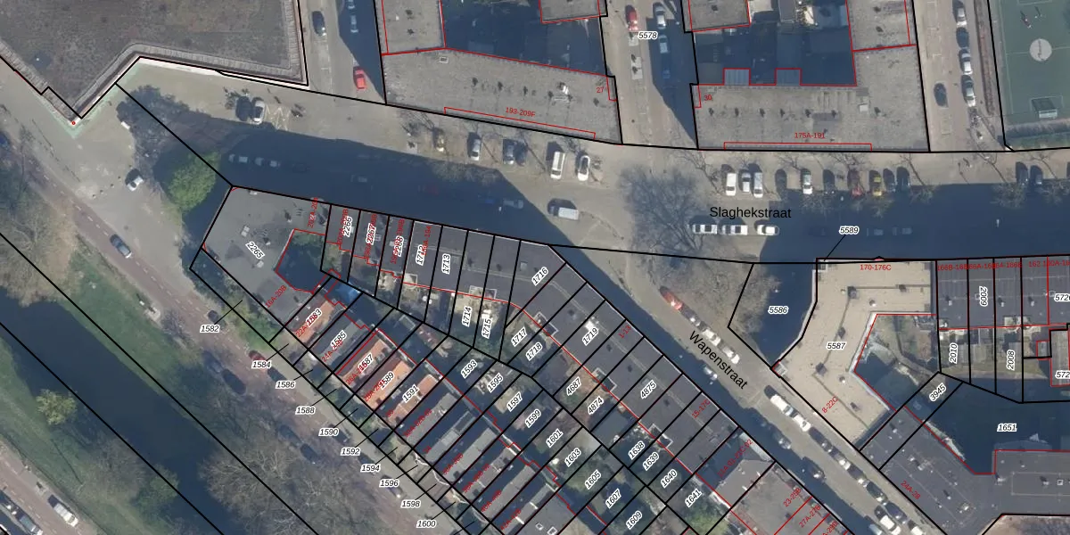 Slaghekstraat 186-B is gelegen op kadastraal perceel CLS00G1716. Deze kadastrale aanduiding is uniek en wordt gebruikt door het Kadaster om eigendomsrechten en andere zakelijke rechten vast te leggen. Het perceel maakt onderdeel uit van de kadastrale gemeente Charlois.