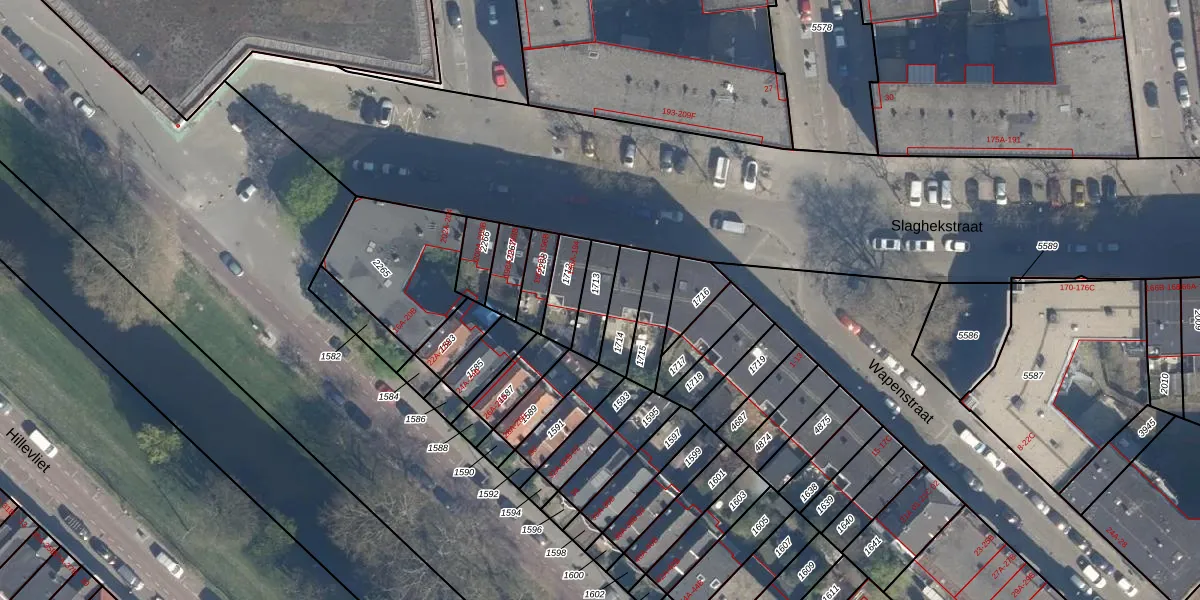 Slaghekstraat 190-B is gelegen op kadastraal perceel CLS00G1713. Deze kadastrale aanduiding is uniek en wordt gebruikt door het Kadaster om eigendomsrechten en andere zakelijke rechten vast te leggen. Het perceel maakt onderdeel uit van de kadastrale gemeente Charlois.