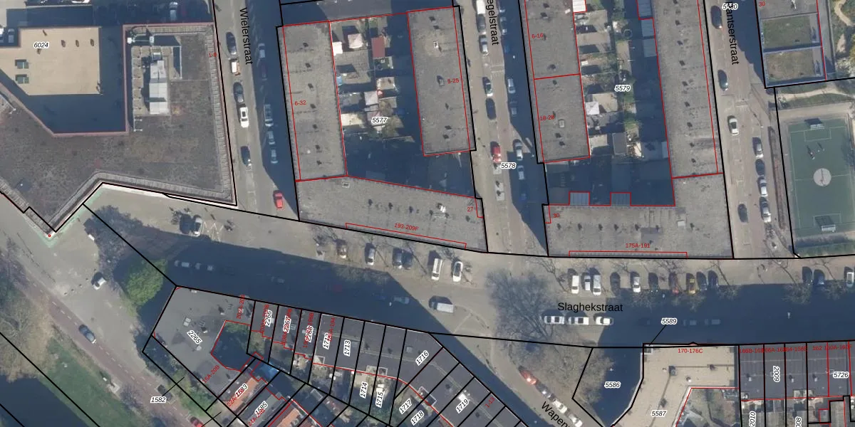 Slaghekstraat 197 is gelegen op kadastraal perceel CLS00G5577. Deze kadastrale aanduiding is uniek en wordt gebruikt door het Kadaster om eigendomsrechten en andere zakelijke rechten vast te leggen. Het perceel maakt onderdeel uit van de kadastrale gemeente Charlois.