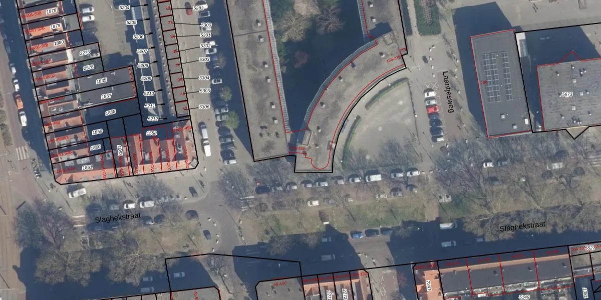 Slaghekstraat 55-A is gelegen op kadastraal perceel RTD05V4059. Deze kadastrale aanduiding is uniek en wordt gebruikt door het Kadaster om eigendomsrechten en andere zakelijke rechten vast te leggen. Het perceel maakt onderdeel uit van de kadastrale gemeente Rotterdam.