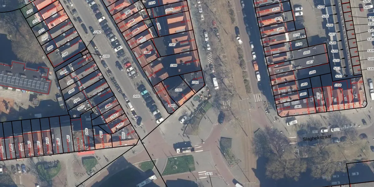 Slaghekstraat 73 is gelegen op kadastraal perceel RTD05V2390. Deze kadastrale aanduiding is uniek en wordt gebruikt door het Kadaster om eigendomsrechten en andere zakelijke rechten vast te leggen. Het perceel maakt onderdeel uit van de kadastrale gemeente Rotterdam.