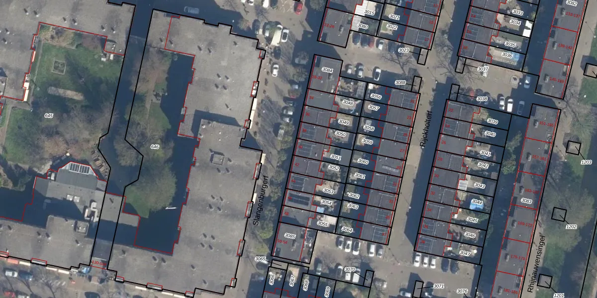 Gebruik de zoekbalk of klik op een perceel voor informatie over de adressen binnen dit perceel.