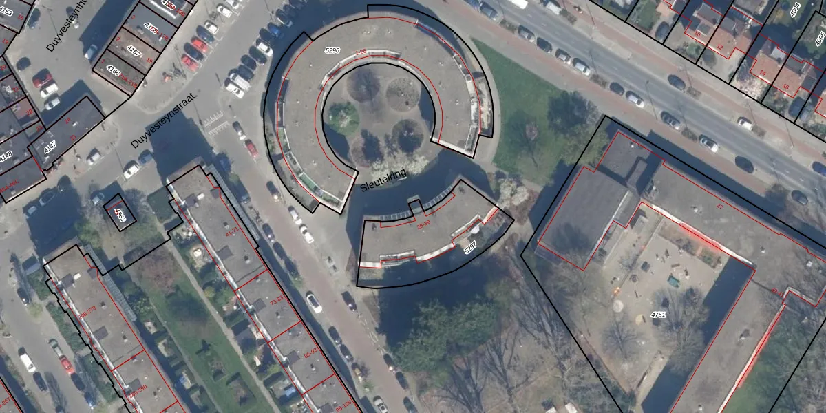 Het perceel waarop Sleutelring 33 staat heeft een oppervlakte van 555 m². Dit is een groot perceel. De perceeloppervlakte wordt geregistreerd door het Kadaster. Gedetailleerde informatie over de maten van dit perceel kunt u vinden in het rapport Kadastrale kaart met maatvoering van Sleutelring 33.