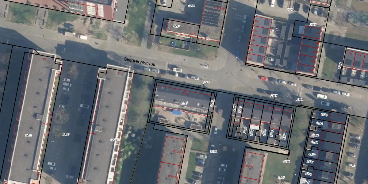 Sliedrechtstraat 64 is gelegen op kadastraal perceel CLS00L2398. Deze kadastrale aanduiding is uniek en wordt gebruikt door het Kadaster om eigendomsrechten en andere zakelijke rechten vast te leggen. Het perceel maakt onderdeel uit van de kadastrale gemeente Charlois.