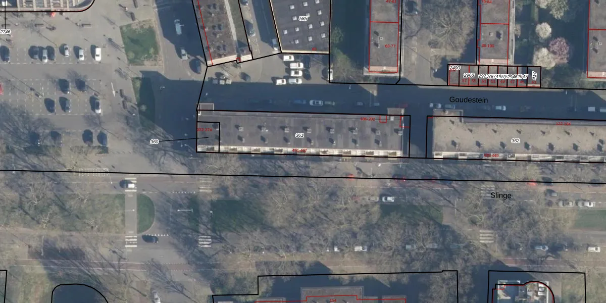 Slinge 459 is gelegen op kadastraal perceel CLS00K361. Deze kadastrale aanduiding is uniek en wordt gebruikt door het Kadaster om eigendomsrechten en andere zakelijke rechten vast te leggen. Het perceel maakt onderdeel uit van de kadastrale gemeente Charlois.