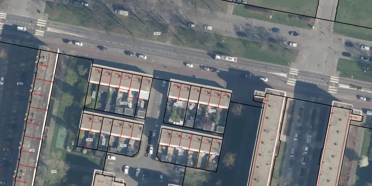 Slinge 516 is gelegen op kadastraal perceel CLS00L2757. Deze kadastrale aanduiding is uniek en wordt gebruikt door het Kadaster om eigendomsrechten en andere zakelijke rechten vast te leggen. Het perceel maakt onderdeel uit van de kadastrale gemeente Charlois.