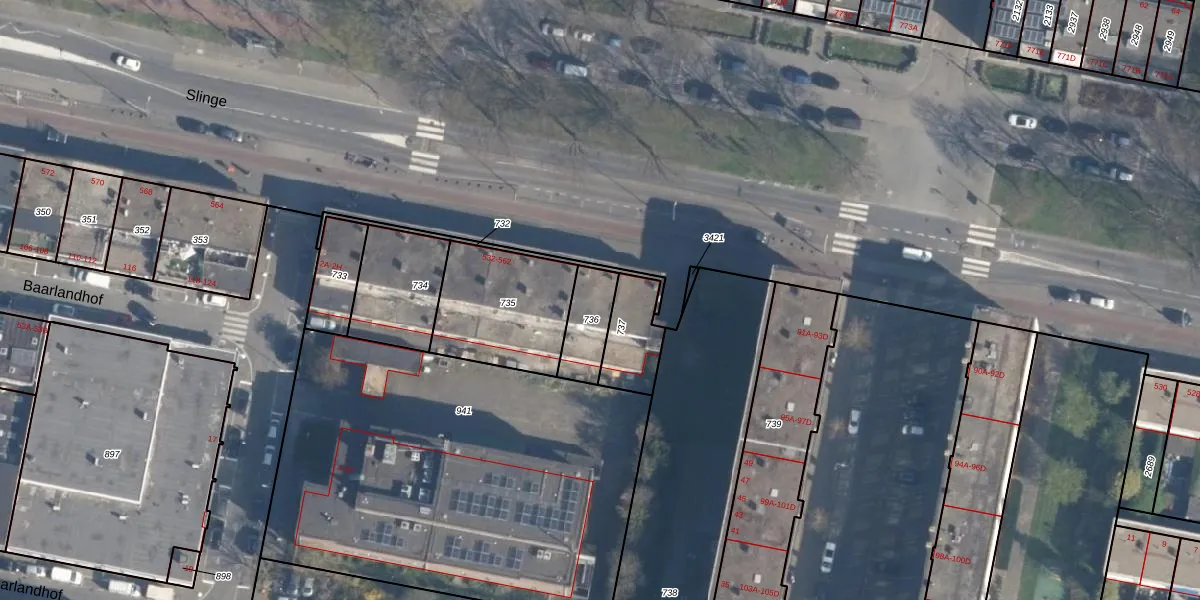 Slinge 550 is gelegen op kadastraal perceel CLS00L736. Deze kadastrale aanduiding is uniek en wordt gebruikt door het Kadaster om eigendomsrechten en andere zakelijke rechten vast te leggen. Het perceel maakt onderdeel uit van de kadastrale gemeente Charlois.