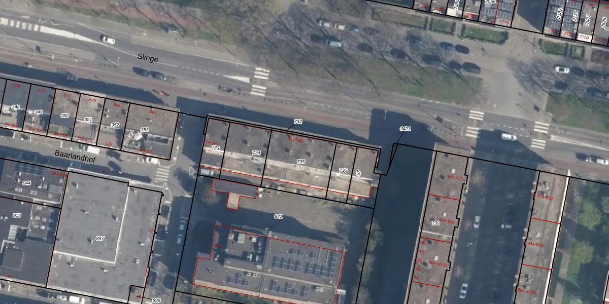 Slinge 556 is gelegen op kadastraal perceel CLS00L735. Deze kadastrale aanduiding is uniek en wordt gebruikt door het Kadaster om eigendomsrechten en andere zakelijke rechten vast te leggen. Het perceel maakt onderdeel uit van de kadastrale gemeente Charlois.