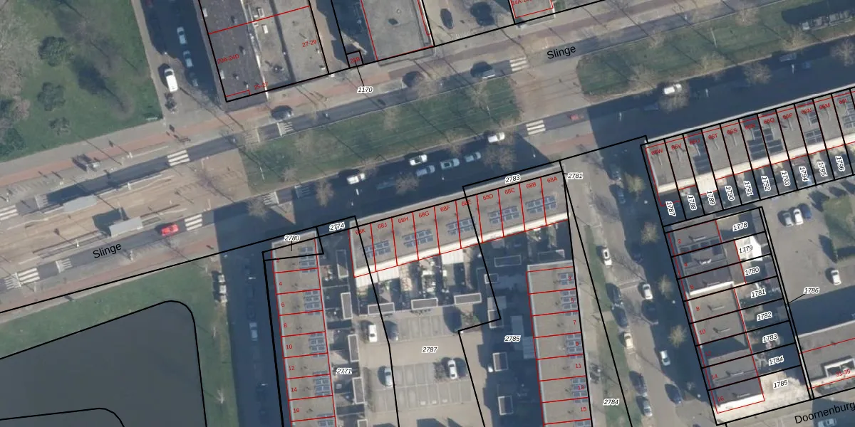 Slinge 68-G is gelegen op kadastraal perceel CLS00K2787. Deze kadastrale aanduiding is uniek en wordt gebruikt door het Kadaster om eigendomsrechten en andere zakelijke rechten vast te leggen. Het perceel maakt onderdeel uit van de kadastrale gemeente Charlois.