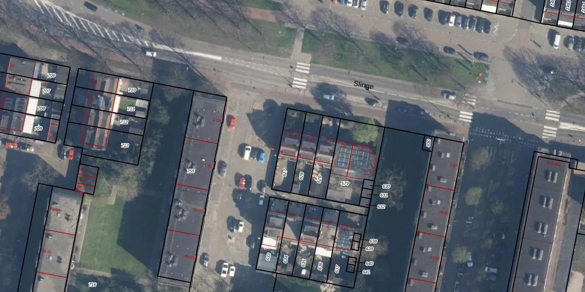 Gebruik de zoekbalk of klik op een perceel voor informatie over de adressen binnen dit perceel.