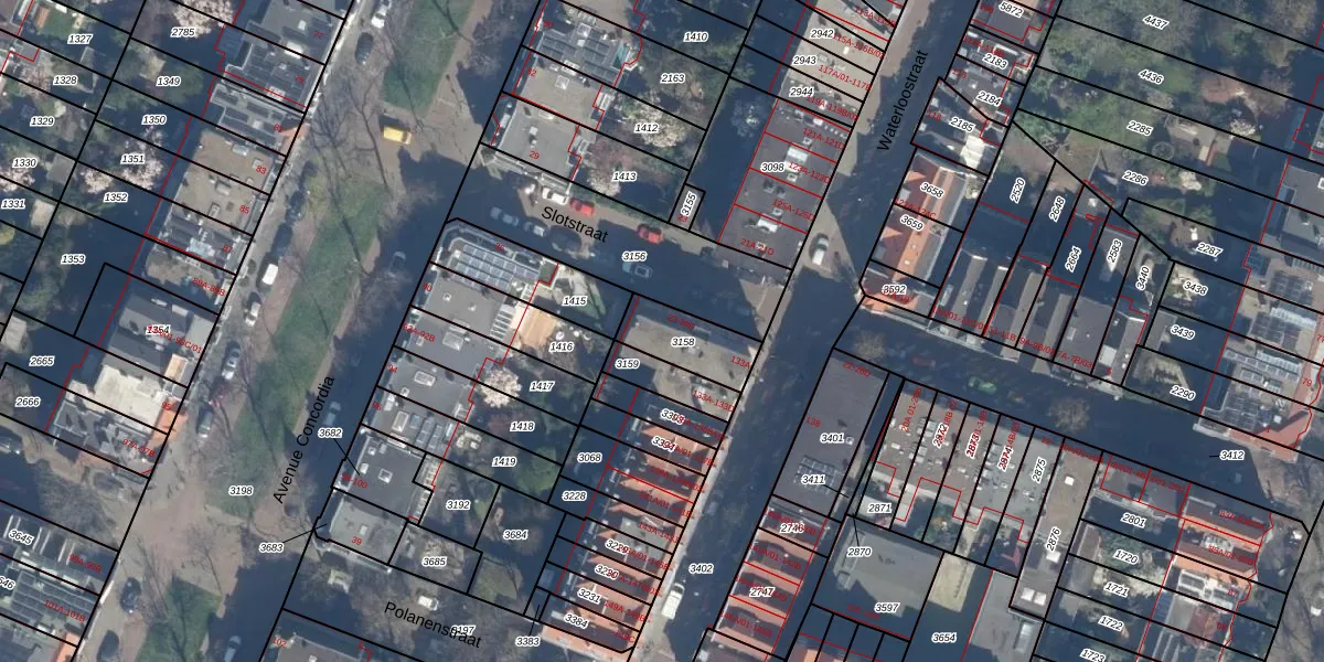 Slotstraat 30-B is gelegen op kadastraal perceel KLG00F3158. Deze kadastrale aanduiding is uniek en wordt gebruikt door het Kadaster om eigendomsrechten en andere zakelijke rechten vast te leggen. Het perceel maakt onderdeel uit van de kadastrale gemeente Kralingen.