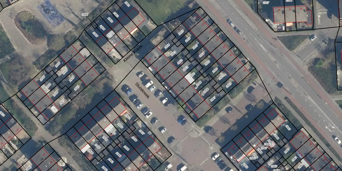 Sluiskreek 13 is gelegen op kadastraal perceel ISM01E2911. Deze kadastrale aanduiding is uniek en wordt gebruikt door het Kadaster om eigendomsrechten en andere zakelijke rechten vast te leggen. Het perceel maakt onderdeel uit van de kadastrale gemeente IJsselmonde.