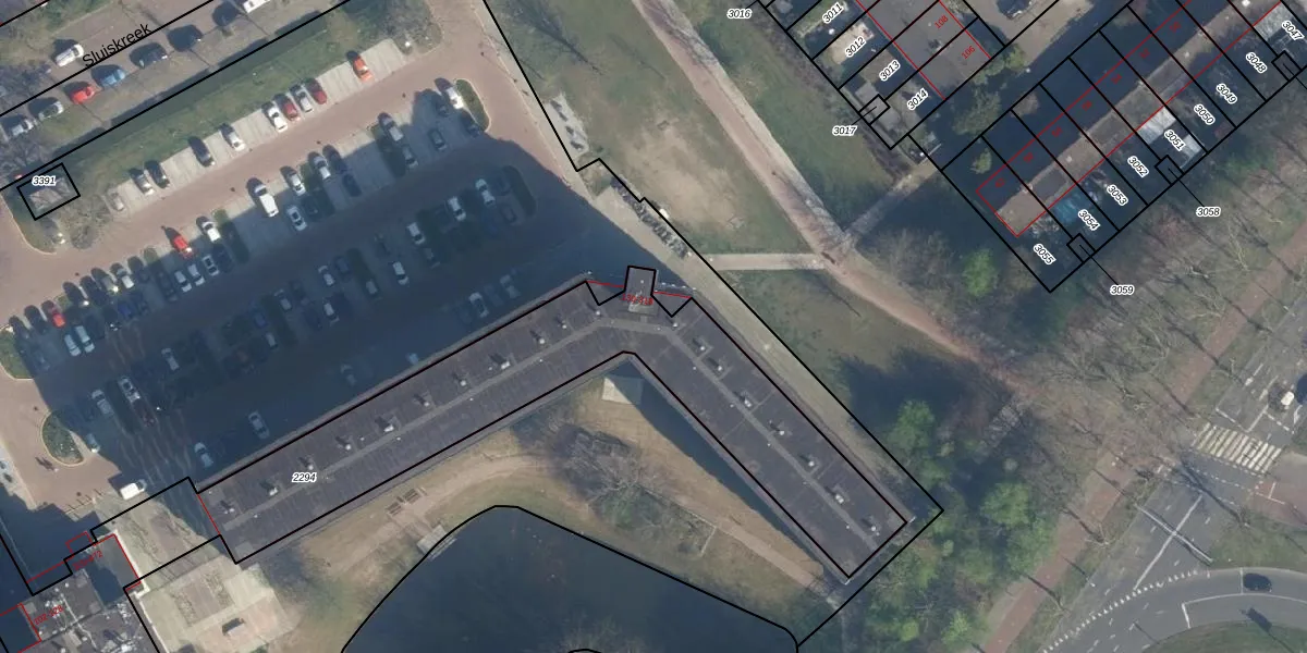Het perceel waarop Sluiskreek 162 staat heeft een oppervlakte van 3900 m². Dit is een zeer groot perceel. De perceeloppervlakte wordt geregistreerd door het Kadaster. Gedetailleerde informatie over de maten van dit perceel kunt u vinden in het rapport Kadastrale kaart met maatvoering van Sluiskreek 162.