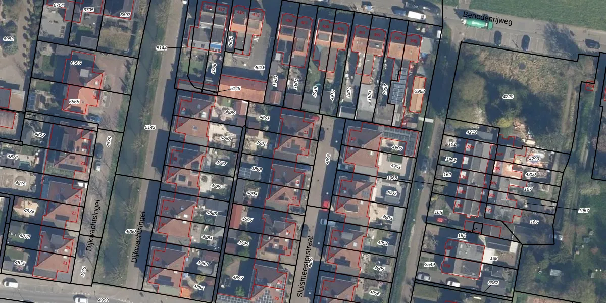 Het perceel waarop Sluismeesterstraat 13 staat heeft een oppervlakte van 198 m². Dit is een middelgroot perceel. De perceeloppervlakte wordt geregistreerd door het Kadaster. Gedetailleerde informatie over de maten van dit perceel kunt u vinden in het rapport Kadastrale kaart met maatvoering van Sluismeesterstraat 13.