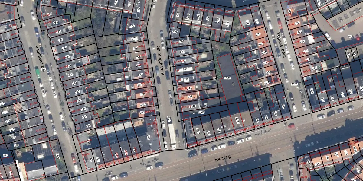 Smaragdstraat 18-A is gelegen op kadastraal perceel SBK01D247. Deze kadastrale aanduiding is uniek en wordt gebruikt door het Kadaster om eigendomsrechten en andere zakelijke rechten vast te leggen. Het perceel maakt onderdeel uit van de kadastrale gemeente Schiebroek.