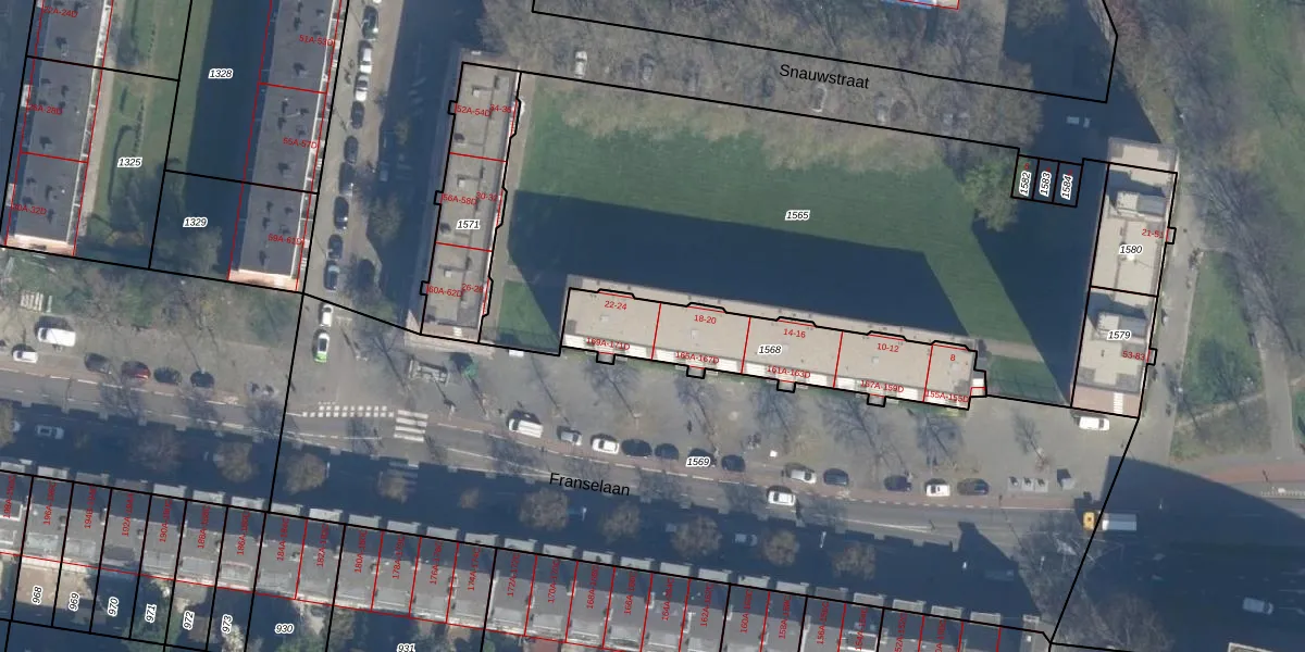 Het perceel waarop Snauwstraat 22 staat heeft een oppervlakte van 608 m². Dit is een groot perceel. De perceeloppervlakte wordt geregistreerd door het Kadaster. Gedetailleerde informatie over de maten van dit perceel kunt u vinden in het rapport Kadastrale kaart met maatvoering van Snauwstraat 22.