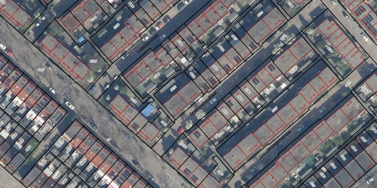 Sneeuwbalstraat 23-B is gelegen op kadastraal perceel CLS00G5172. Deze kadastrale aanduiding is uniek en wordt gebruikt door het Kadaster om eigendomsrechten en andere zakelijke rechten vast te leggen. Het perceel maakt onderdeel uit van de kadastrale gemeente Charlois.