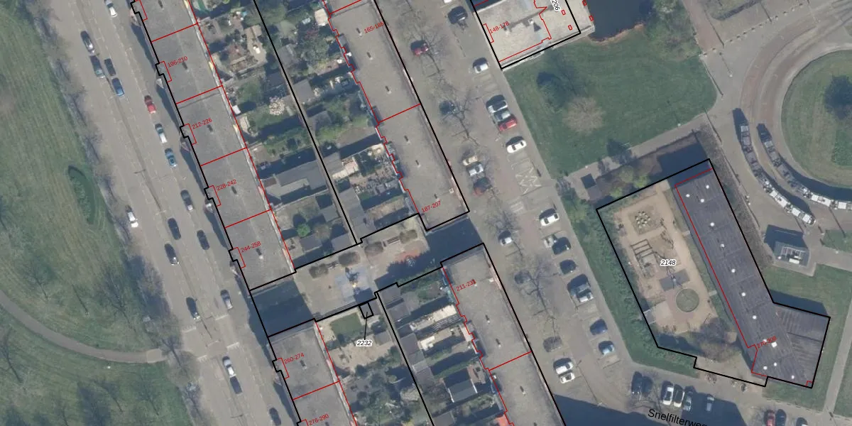 Snelfilterweg 207 is gelegen op kadastraal perceel KLG00E2172. Deze kadastrale aanduiding is uniek en wordt gebruikt door het Kadaster om eigendomsrechten en andere zakelijke rechten vast te leggen. Het perceel maakt onderdeel uit van de kadastrale gemeente Kralingen.