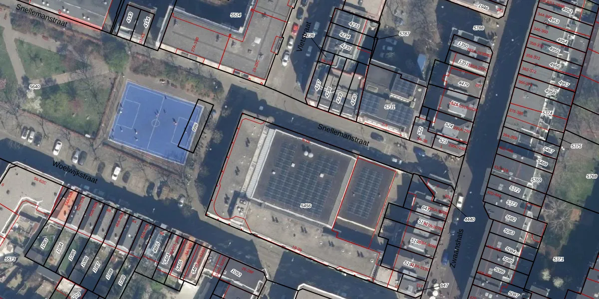 Snellemanstraat 6 is gelegen op kadastraal perceel RTD07W5456. Deze kadastrale aanduiding is uniek en wordt gebruikt door het Kadaster om eigendomsrechten en andere zakelijke rechten vast te leggen. Het perceel maakt onderdeel uit van de kadastrale gemeente Rotterdam.