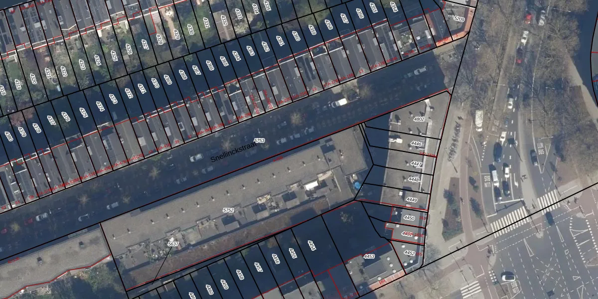 Het perceel waarop Snellinckstraat 16-A staat heeft een oppervlakte van 2240 m². Dit is een zeer groot perceel. De perceeloppervlakte wordt geregistreerd door het Kadaster. Gedetailleerde informatie over de maten van dit perceel kunt u vinden in het rapport Kadastrale kaart met maatvoering van Snellinckstraat 16-A.