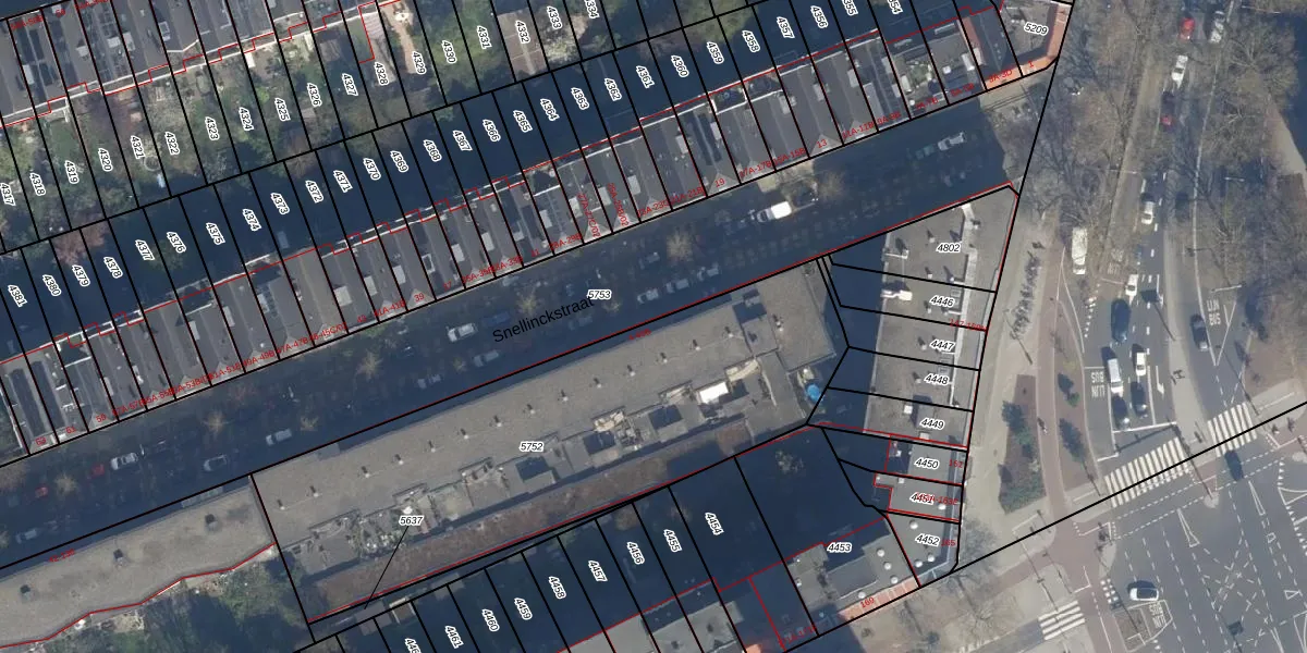 Het perceel waarop Snellinckstraat 18-B staat heeft een oppervlakte van 2240 m². Dit is een zeer groot perceel. De perceeloppervlakte wordt geregistreerd door het Kadaster. Gedetailleerde informatie over de maten van dit perceel kunt u vinden in het rapport Kadastrale kaart met maatvoering van Snellinckstraat 18-B.