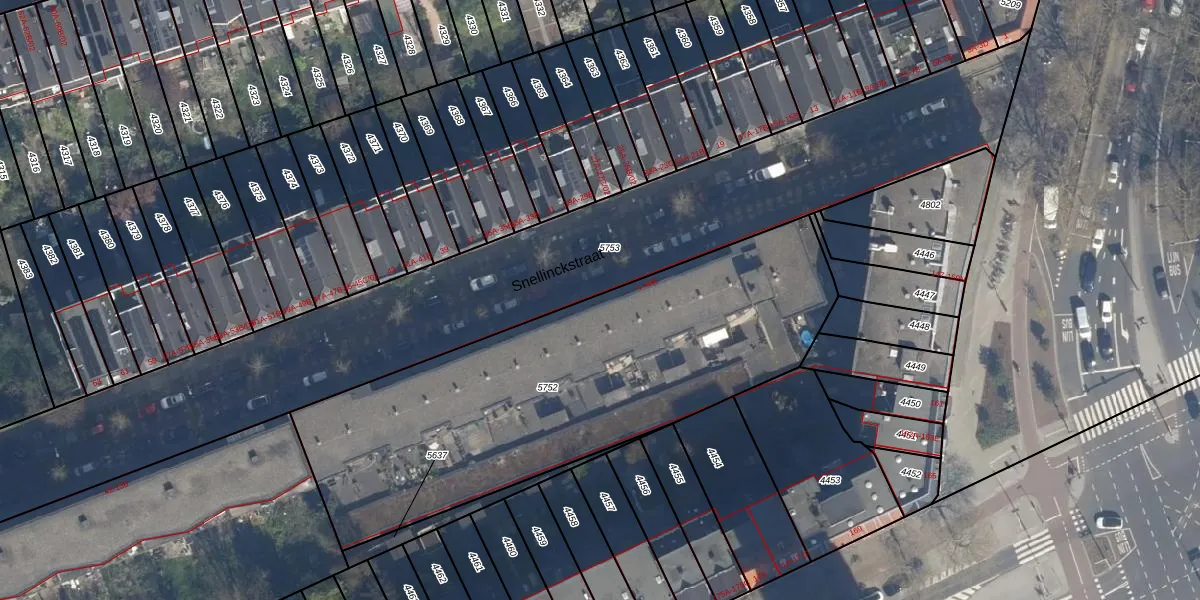 Het perceel waarop Snellinckstraat 22-A staat heeft een oppervlakte van 2240 m². Dit is een zeer groot perceel. De perceeloppervlakte wordt geregistreerd door het Kadaster. Gedetailleerde informatie over de maten van dit perceel kunt u vinden in het rapport Kadastrale kaart met maatvoering van Snellinckstraat 22-A.