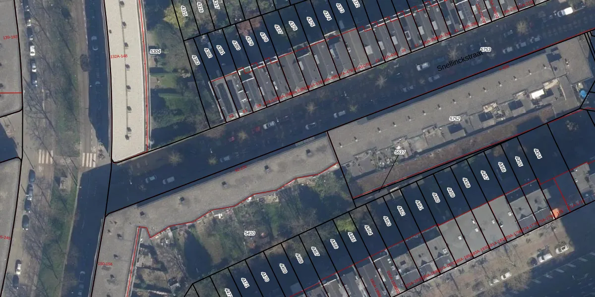 Het perceel waarop Snellinckstraat 48 staat heeft een oppervlakte van 2755 m². Dit is een zeer groot perceel. De perceeloppervlakte wordt geregistreerd door het Kadaster. Gedetailleerde informatie over de maten van dit perceel kunt u vinden in het rapport Kadastrale kaart met maatvoering van Snellinckstraat 48.