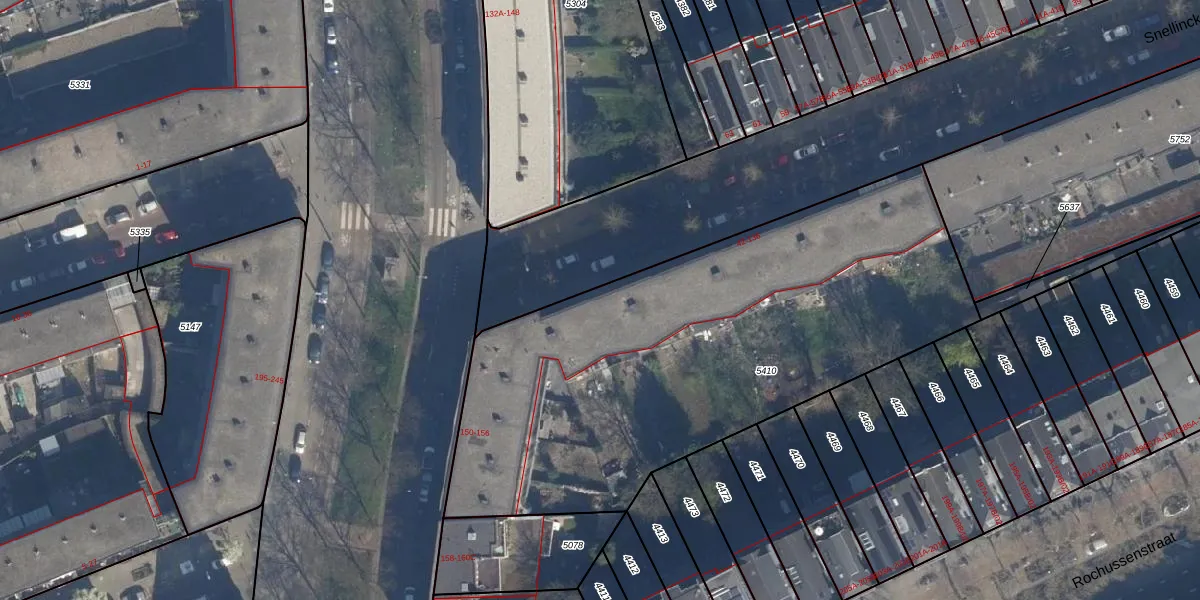 Het perceel waarop Snellinckstraat 88 staat heeft een oppervlakte van 2755 m². Dit is een zeer groot perceel. De perceeloppervlakte wordt geregistreerd door het Kadaster. Gedetailleerde informatie over de maten van dit perceel kunt u vinden in het rapport Kadastrale kaart met maatvoering van Snellinckstraat 88.