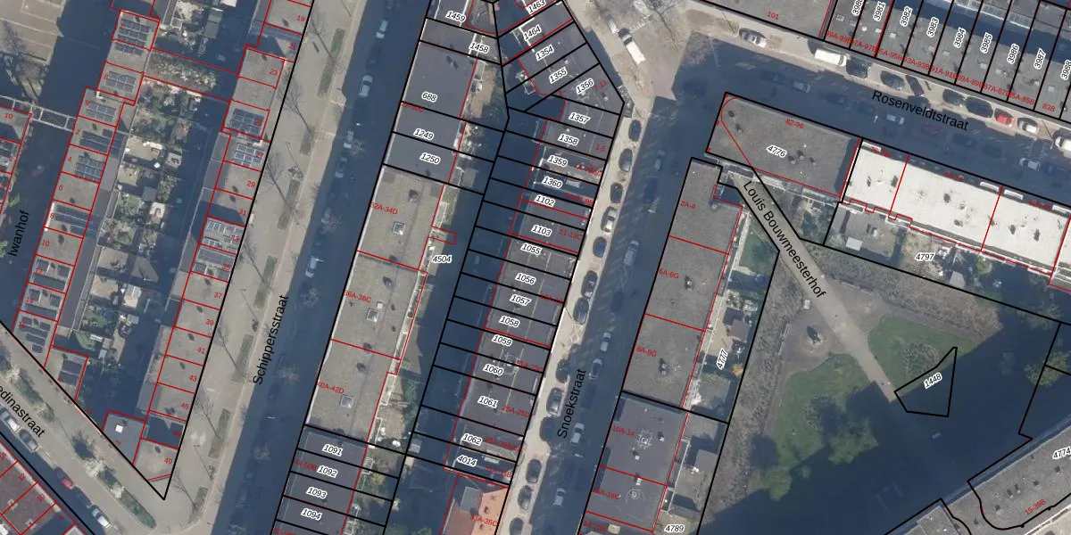 Het perceel waarop Snoekstraat 17-C staat heeft een oppervlakte van 91 m². Dit is een klein perceel. De perceeloppervlakte wordt geregistreerd door het Kadaster. Gedetailleerde informatie over de maten van dit perceel kunt u vinden in het rapport Kadastrale kaart met maatvoering van Snoekstraat 17-C.