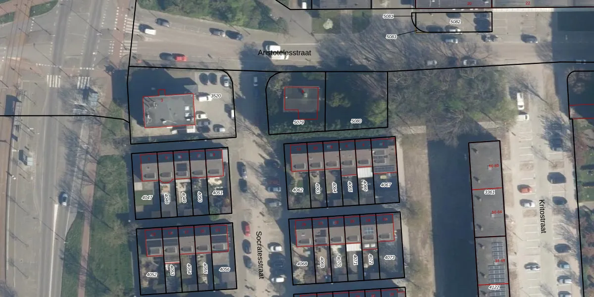 Het perceel waarop Socratesstraat 12 staat heeft een oppervlakte van 172 m². Dit is een middelgroot perceel. De perceeloppervlakte wordt geregistreerd door het Kadaster. Gedetailleerde informatie over de maten van dit perceel kunt u vinden in het rapport Kadastrale kaart met maatvoering van Socratesstraat 12.