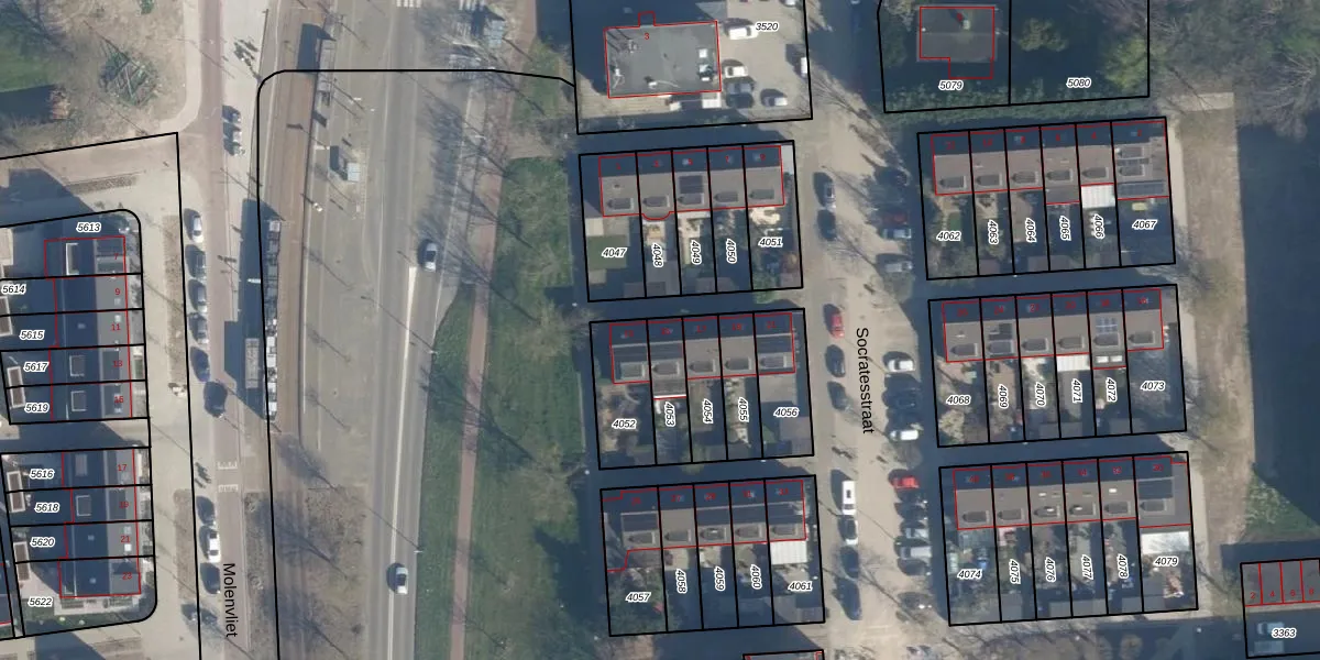 Socratesstraat 15 is gelegen op kadastraal perceel ISM01C4053. Deze kadastrale aanduiding is uniek en wordt gebruikt door het Kadaster om eigendomsrechten en andere zakelijke rechten vast te leggen. Het perceel maakt onderdeel uit van de kadastrale gemeente IJsselmonde.