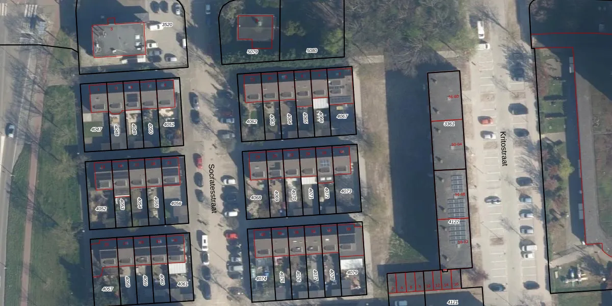 Het perceel waarop Socratesstraat 20 staat heeft een oppervlakte van 119 m². Dit is een middelgroot perceel. De perceeloppervlakte wordt geregistreerd door het Kadaster. Gedetailleerde informatie over de maten van dit perceel kunt u vinden in het rapport Kadastrale kaart met maatvoering van Socratesstraat 20.