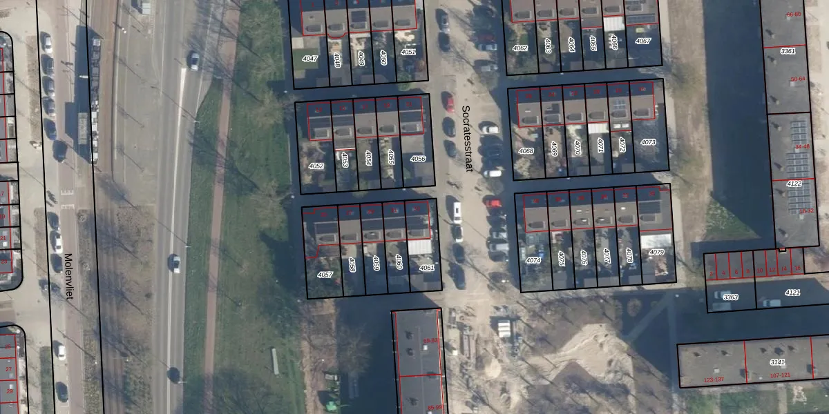 Socratesstraat 33 is gelegen op kadastraal perceel ISM01C4061. Deze kadastrale aanduiding is uniek en wordt gebruikt door het Kadaster om eigendomsrechten en andere zakelijke rechten vast te leggen. Het perceel maakt onderdeel uit van de kadastrale gemeente IJsselmonde.