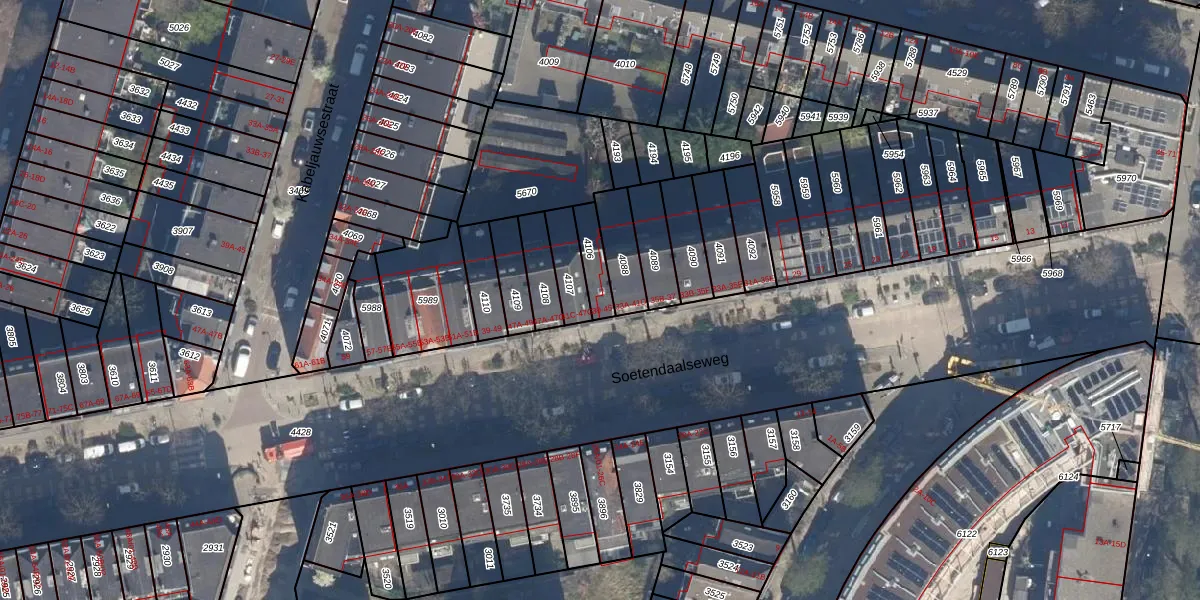 Soetendaalseweg 41-C is gelegen op kadastraal perceel RTD09Y4106. Deze kadastrale aanduiding is uniek en wordt gebruikt door het Kadaster om eigendomsrechten en andere zakelijke rechten vast te leggen. Het perceel maakt onderdeel uit van de kadastrale gemeente Rotterdam.