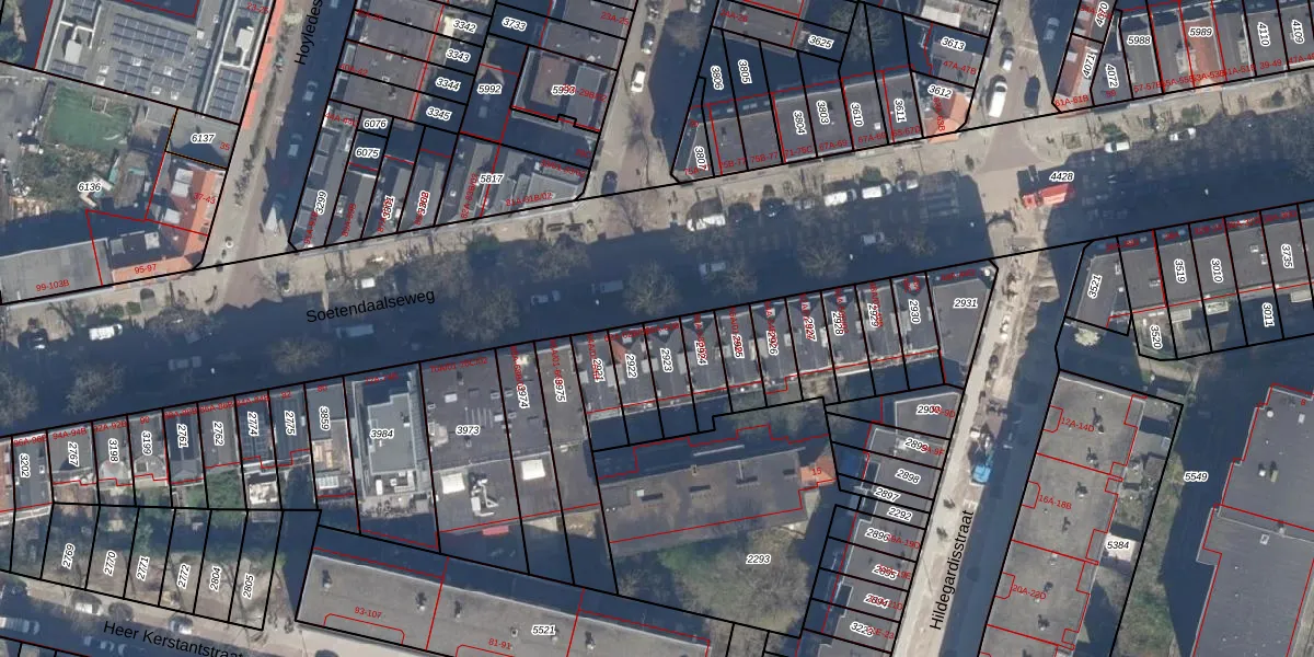 Het perceel waarop Soetendaalseweg 60-B staat heeft een oppervlakte van 99 m². Dit is een klein perceel. De perceeloppervlakte wordt geregistreerd door het Kadaster. Gedetailleerde informatie over de maten van dit perceel kunt u vinden in het rapport Kadastrale kaart met maatvoering van Soetendaalseweg 60-B.