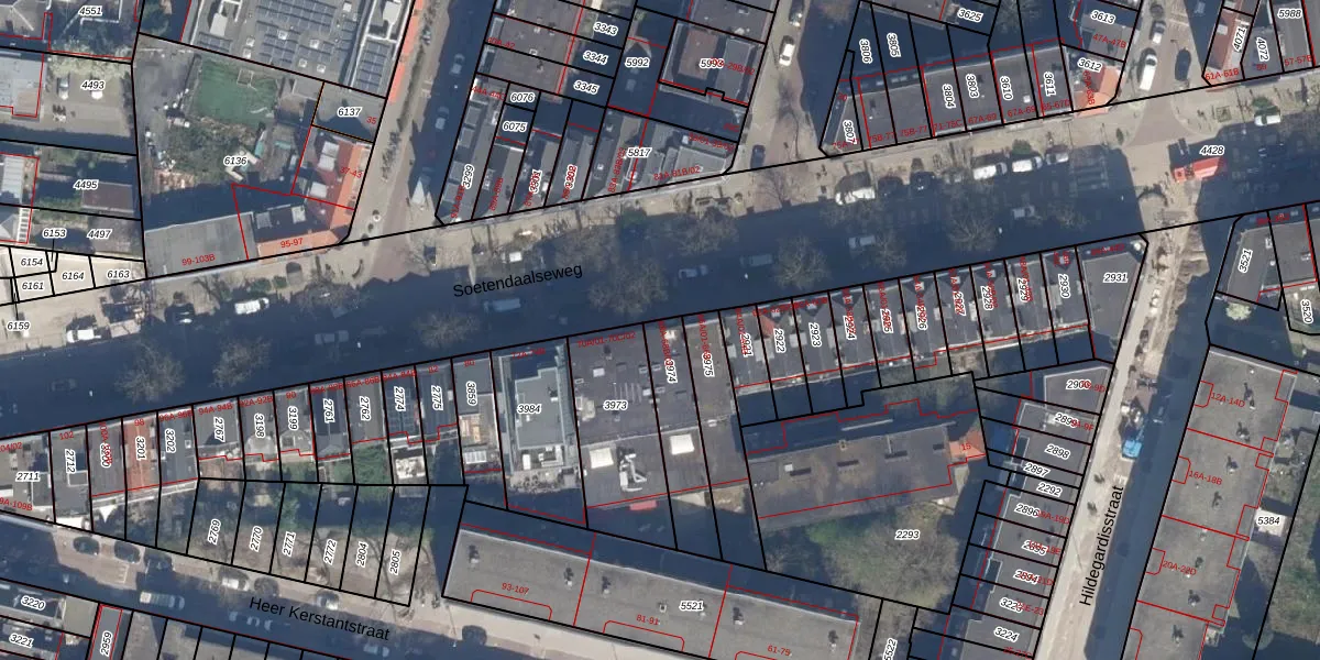 Soetendaalseweg 68-B-02 is gelegen op kadastraal perceel RTD09Y3974. Deze kadastrale aanduiding is uniek en wordt gebruikt door het Kadaster om eigendomsrechten en andere zakelijke rechten vast te leggen. Het perceel maakt onderdeel uit van de kadastrale gemeente Rotterdam.