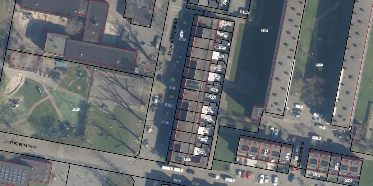 Gebruik de zoekbalk of klik op een perceel voor informatie over de adressen binnen dit perceel.